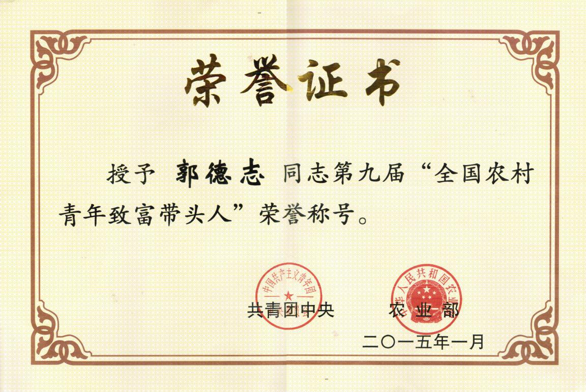 郭德志現(xiàn)任永州市異蛇科技實(shí)業(yè)有限公司總經(jīng)理、永州市青年企業(yè)家協(xié)會副會長。是永州市農(nóng)村致富帶頭人協(xié)會會長、永州異蛇生物產(chǎn)業(yè)發(fā)展協(xié)會會長、永州異蛇生物研究所所長。2009年被評為永州市零陵區(qū)優(yōu)秀區(qū)政協(xié)委員,2010年獲永州市科學(xué)技術(shù)進(jìn)步一等獎(jiǎng),2010年獲湖南省科學(xué)技術(shù)進(jìn)步三等獎(jiǎng),獲2009年度永州市零陵區(qū)統(tǒng)戰(zhàn)工作先進(jìn)個(gè)人,2009年獲永州市青年崗位能手,2011年獲湖南省五四青年獎(jiǎng)?wù)拢?013年獲湖南省科技進(jìn)步二等獎(jiǎng),2011年獲永州市十大杰出民營企業(yè)家稱號,2011年獲湖南省縣域經(jīng)濟(jì)十大杰出人物稱號,2013年獲永州十大杰出青年稱號。經(jīng)過多年的拼搏,榮獲“全國農(nóng)村青年致富帶頭人”稱號,成為永州市農(nóng)村青年學(xué)習(xí)的榜樣。