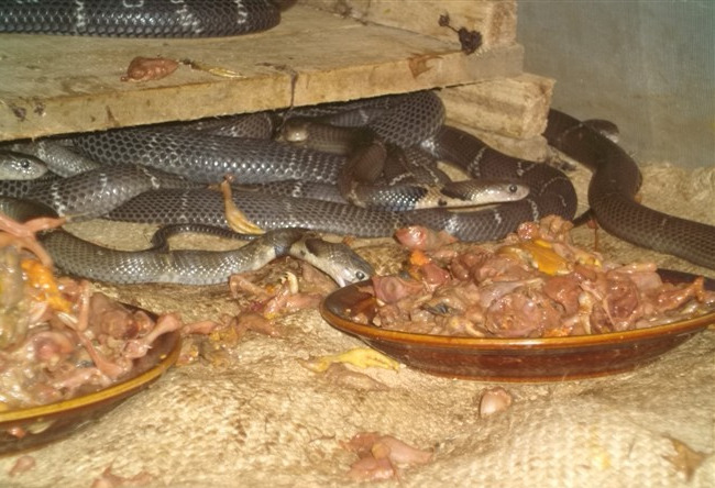 其實這個問題不難理解,這也是養(yǎng)蛇行業(yè)形成的一條不成文的規(guī)矩,也是好多深知內(nèi)幕但也不愿提及的業(yè)內(nèi)“秘密”。 各地養(yǎng)蛇場家為了長久地做下去,要給所養(yǎng)的蛇類一律好吃好喝的伺候著,這其中肯定離不開養(yǎng)殖成本的核算問題。尤其是能吃能喝的大型蛇類王錦蛇、棕黑錦蛇、赤峰錦蛇、滑鼠蛇(水律蛇)和眼鏡蛇等,時下這些蛇的養(yǎng)殖成本也是一路走高。如果有養(yǎng)蛇場家聯(lián)系不到較為便宜的成批淘汰幼雛,按市價每只0. 15 ~0. 25元投喂蛇的話,一年下來其養(yǎng)殖成本是相當高的。這筆賬若與野生狀態(tài)下捕捉而來的同種蛇相比,其價格立馬就會“敗下陣來”。一句話說白了,家養(yǎng)蛇和野生蛇兩者之間根本沒有可比性,野生蛇完全是無一分錢成本的“拿來主義”,頂多蛇販子和中間蛇商再多賺點,這中間 “一手貨”的捕蛇人是最大的獲利者,本來捕蛇人做的就是純粹的無本生意嘛!反正他們捕到的野生蛇既不存放也不養(yǎng)殖,錢多錢少的 絕大部分給錢就賣。如此這樣一輪一輪的計算下來,進入市場的野生蛇除占盡價格低廉的優(yōu)勢外,百分之百的商販都會給野生蛇注水或填喂,注水或填喂量的多少就看攤販自己的良心了。難怪好多人發(fā)自內(nèi)心無奈地感慨道:時下給動物注水或填食的情形真是無處不在,攤販連冬天出售的蛇也不放過,仍舊是統(tǒng)統(tǒng)地一律注水或填喂后銷售,這就是目前市場上野生蛇價格低廉的真諦所在。